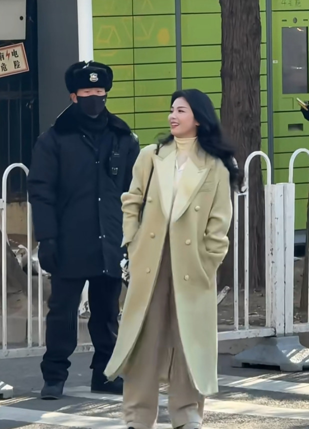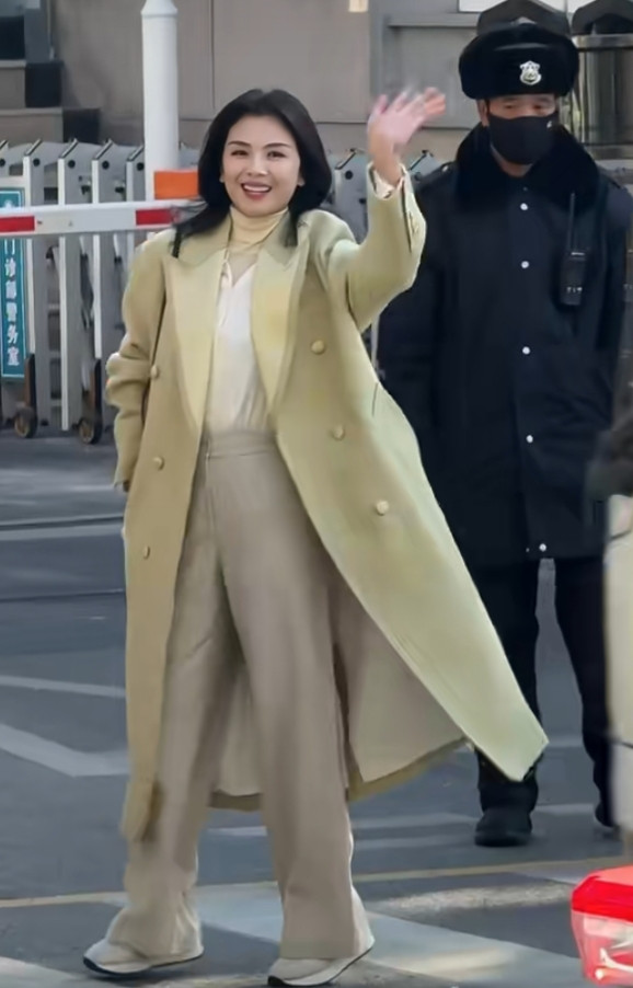 刘涛春晚第三次联排上班路透, 长款大衣配微卷长发, 优雅又漂亮