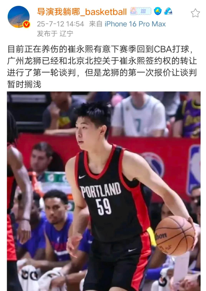 导演我躺哪_basketball也同步谈到了广州队和北控队的情况:目前正在养伤的崔永熙有意下赛季回到CBA打球,广州龙狮已经和北京北控关于崔永熙签约权的转让进行了第一轮谈判,但是龙狮的第一次报价让谈判暂时搁浅。